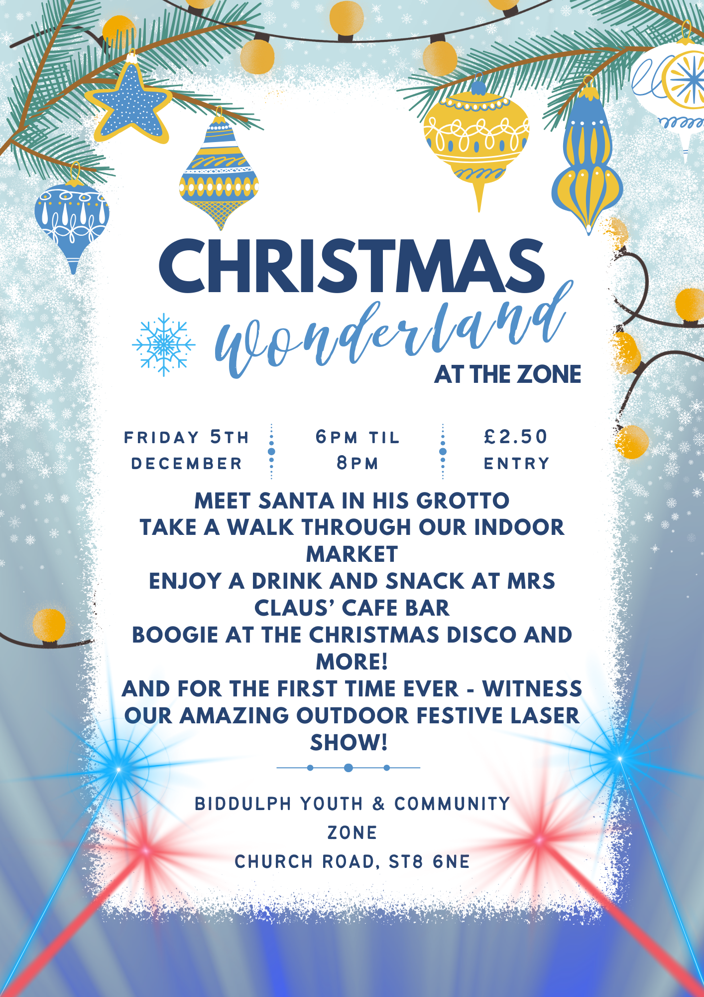 For just £2.50pp you can meet Santa, shop at our Indoor Market, visit Mrs Claus' Cafe Bar and enjoy our first ever outdoor laser show plus so much more!