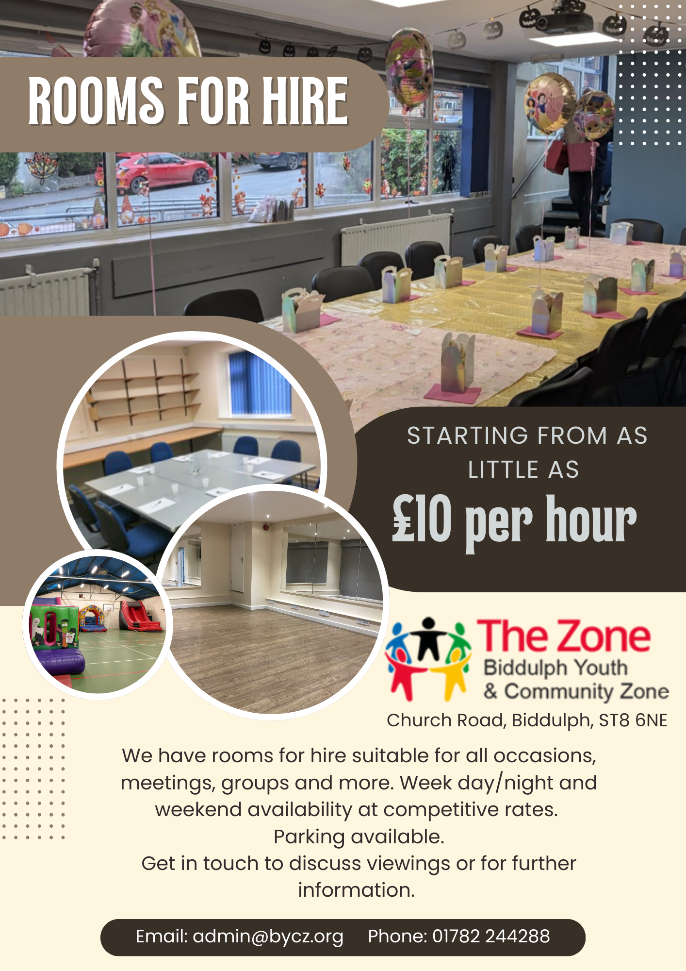 If you're considering hosting a party, running a new group or meeting and looking for a space, look no further. You can call 01782 244288 to arrange a viewing or discuss further.