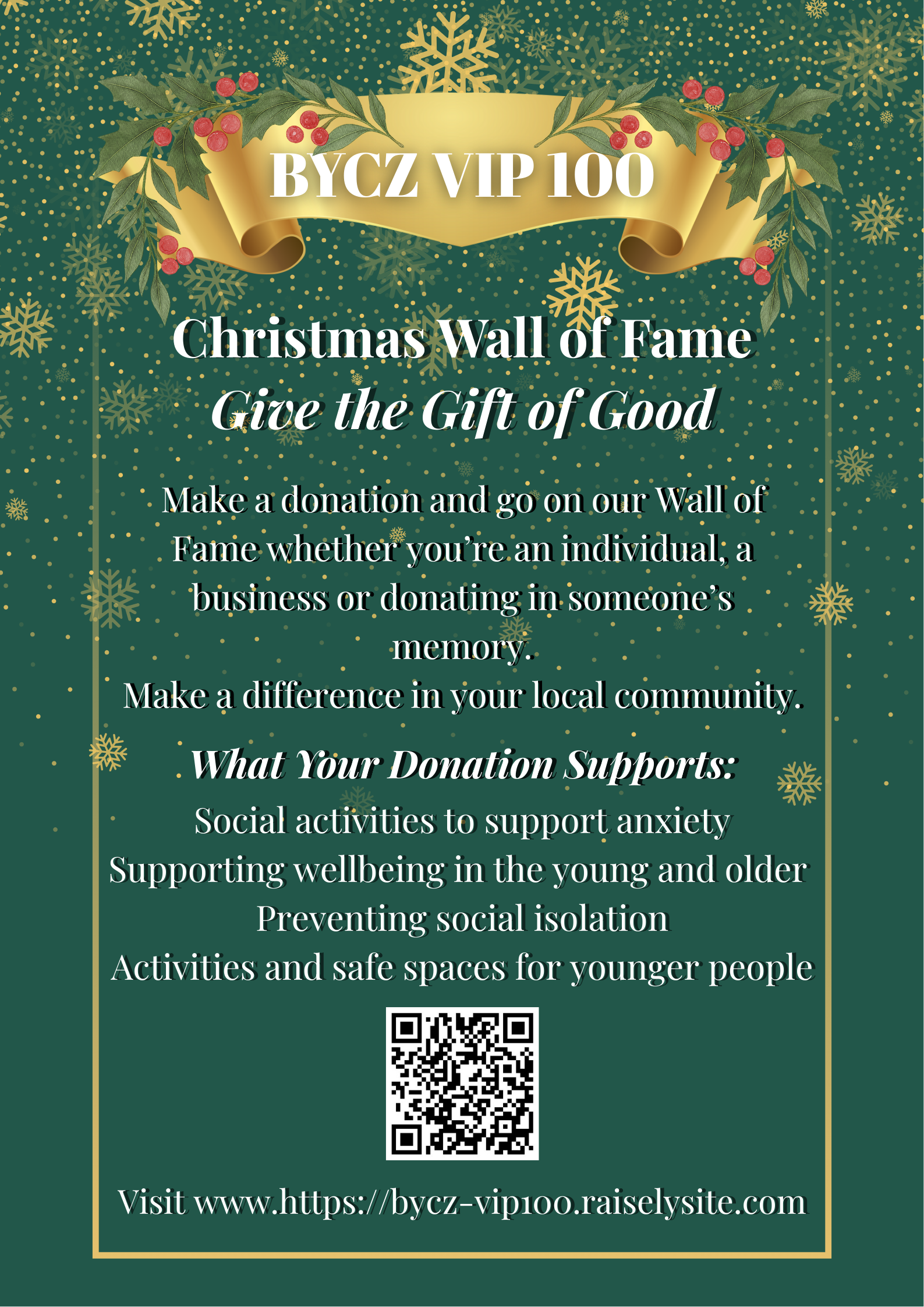 Become a BYCZ VIP 100 member this Christmas and join our Wall of Fame.